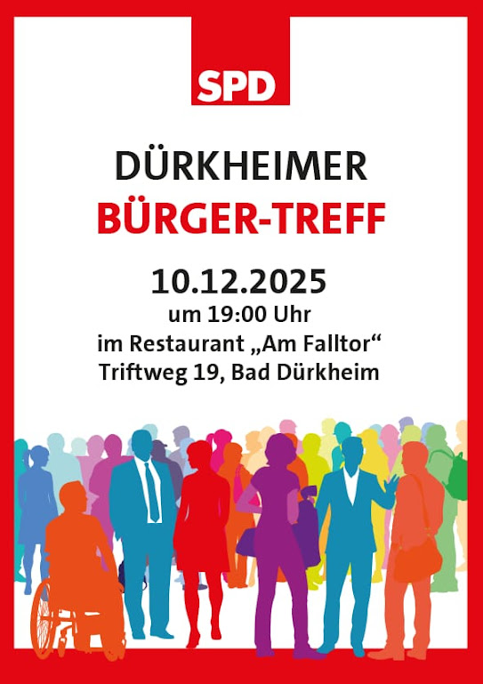 Auf dieser Seite finden Sie Informationen zu unseren politischen Zielen, Termine und Nachrichten, sowie einen Überblick über unsere Partei und über die Arbeit der SPD-Fraktion im Rat der Stadt Bad Dürkheim.