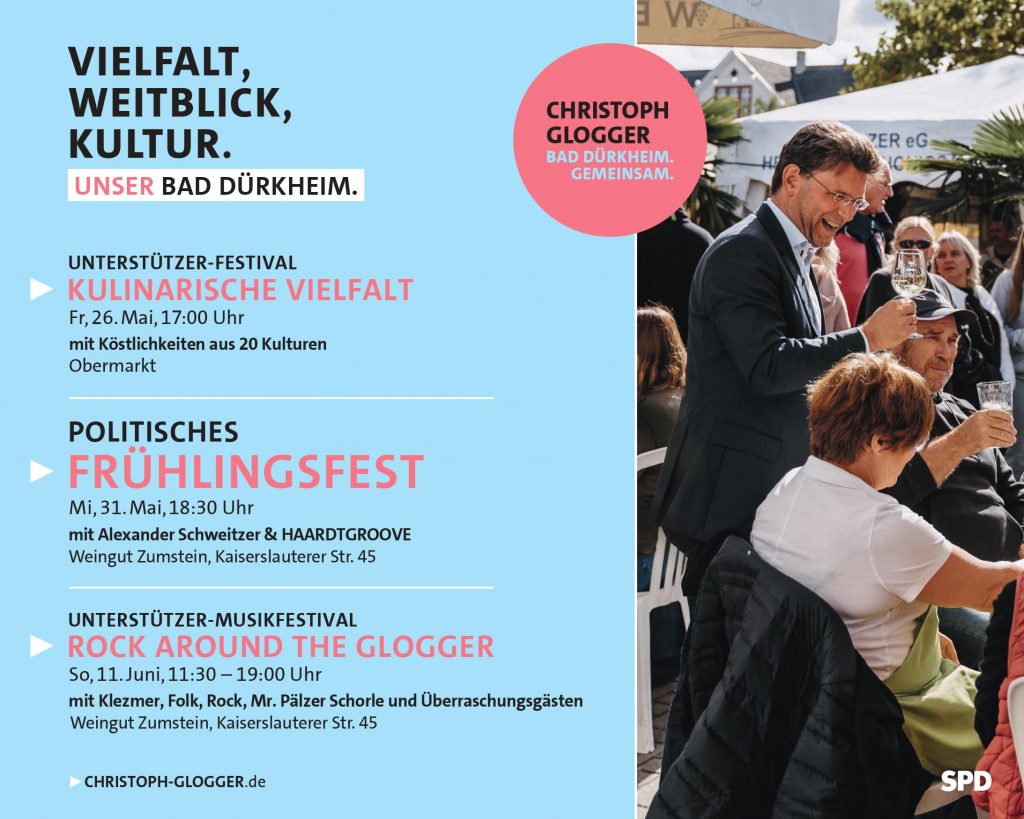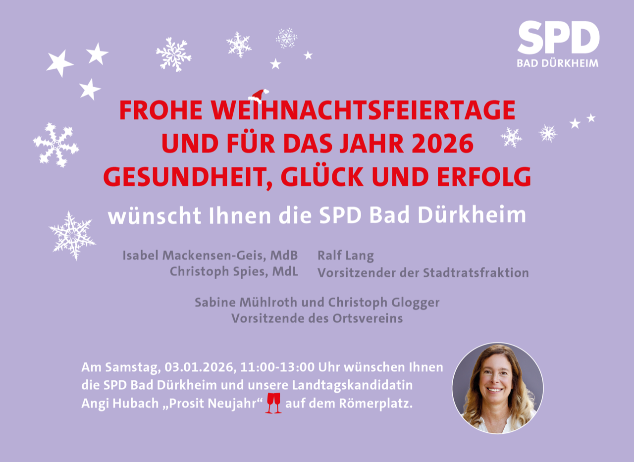 Auf dieser Seite finden Sie Informationen zu unseren politischen Zielen, Termine und Nachrichten, sowie einen Überblick über unsere Partei und über die Arbeit der SPD-Fraktion im Rat der Stadt Bad Dürkheim.