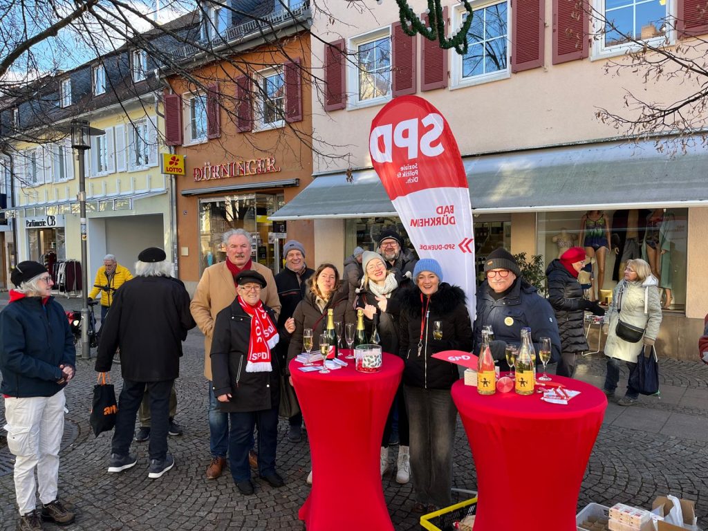Bei bestem Austausch und guter Stimmung hat die SPD Bad Dürkheim gemeinsam mit ihrer Landtagskandidatin Angi Hubach am Samstag auf dem Römerplatz das neue Jahr begrüßt. Zahlreiche Bürgerinnen und Bürger waren der Einladung zum Neujahrs-Infostand gefolgt und nutzten die Gelegenheit zu vielen guten und offenen Gesprächen.